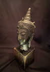 9.5” Antique Thai Siam Bronze Buddha Head Sculpture Statue