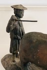 Vintage Bronze Sculpture Chinese Peasant And Water Buffalo Indochinese Statue