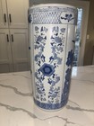 Vintage Blue /white Porcelain Umbrella Stand Birds Floral Landscape 18” Tall