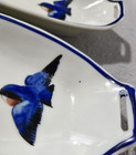 2 Blue Bird In Flight Hand Painted Nippon Porcelain Oblong Dish Scarce Vintage