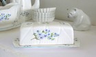 Mckenzie-childs Butter Box Dish Royal Check Blue Enamel Glass Knob Kitchenware