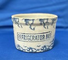 Vintage Clay City Pottery Blue Spongeware Crock Rustic Farmhouse 5.5" D X 4" H