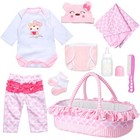 9 Pcs Reborn Baby Doll Clothes Set With Pink Bassinet Accessories For 18-22