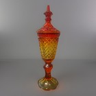 Uv Glowing Vintage Amberina 16 Inch Lidded Apothecary Jar Diamond Point Pattern