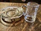 Silver Overlay Etched Glass Creamer & Underplate Set Antique C1930 Art Deco