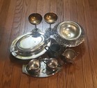 Silver Ware Thick Plate Lot Of 8 Vintage Silverplate Dishes Trays Soup Tureens