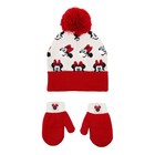 Minnie Mouse Toddler Girl's 2pc Printed Knit Cuffed Pom Beanie And Mittens Set