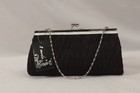 Vintage Retro Black Satin Clutch Purse Rosette Knot Detail Formal Evening Bag