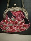 Hillard & Hanson Black Beaded Clutch Purse Evening Hand Bag Crossbody Floral Y2k