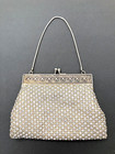 Vintage Delill Prong Set Crystal Silver Plate Cream Handbag Purse Evening Bag