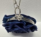 Navy Blue Pleated Evening Clutch Purse Rhinestone Bow Drop In Silver Chain Nwot