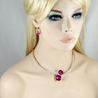 Grace Fuchsia Austrian Rhinestone Necklace Earrings Set N953f Gold Plated