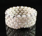 Flexible 5-row Austrian Rhinestone Pearl Bangle Arm Bracelet Bridal B1340-gold