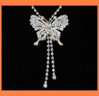 Butterfly Rhinestone Necklace Earrings Set Bridal Wedding Prom N58 Gold Plated