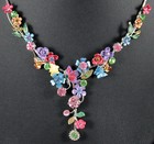 Painted Butterfly Floral Austrian Crystal Rhinestone Necklace Earrings Set N940