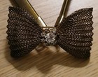 Antique Women's Belt With Coppper And Rhinestone Bow Buckle Clip On 36"