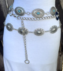 Vintage Concho Belt 70s Fiesta Stamped Southwestern Boho Silver Tone Metal 33”