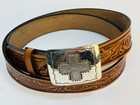 Vintage Western Leather Horsehair Belt With Braided Buckle Size 36