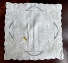 Vintage Hanky Hankie Brode Main New White Embroidery Handwork Tags Ribbons