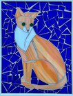 Mosaic Cat Cut Tile Flesh White Cobalt Blue Glass Abstract Collage Original Art