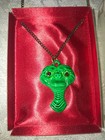 1982 Vintage Et Green Metal Pendant Charm 18” Chain Necklace Red Eyes E.t. 1¼" T