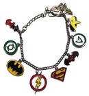 Dc Comics Superhero Logo (9 Themed Charms) Silvertone/enamel Charm Bracelet