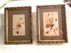 Vtg Pressed Flowers Petals Seed Pods Gold Wood Framed Wall Art 8x6" W/glass Set2