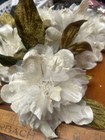 Peony Flower 5" Leaves Velvet Organza 1pc White