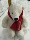 Coca Cola Brand 1993 Plush Polar Bear Wearing Red Scarf 14 Inches Winter Holiday