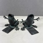 Pair Of 2 Spi Bronze Patina Cast Metal Singing Frog Open Mouth Bookends