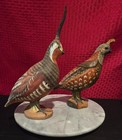 Carved Wooden Quail Set Bird Female Male Bobwhite Natural Wood Base Painted 6”