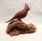 Signed Todd Weber Black Walnut Cardinal Wood Figurine On Manzanita Base