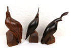 3 Ironwood Quail Wooden Carved Figurines Family Mcm Vtg Between 7" & 8"