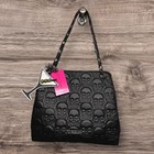 Betsey Johnson Skull Quilted Handbag Black Studded Martini Charm Punk Gothic