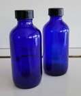 2 Cobalt Blue Medicine Bottles With Black Plastic Lid 4.5 Inches Holds 4 Ozs
