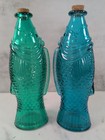 9 Inch Tall Teal & Blue Fish Shaped Glass Bottles With Corks