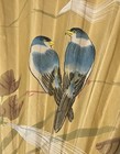 Vintage Large Asian Hand-painted Folding Wall Fan, 36x20 Floral & 2 Blue Birds.