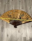 Large Gold Hand Painted Chinese Fan Wall Decor 30"x50"