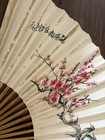 Vintage Large Asian Fan Wall Art Hand Painte With Birds & Flowers