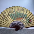 Large Vintage Oriental Folding Wall Fan 32 Inch Bird Art Painting