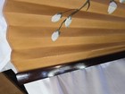 Vintage Wooden Paper Fan Water Lilies Birds Decoration Decor Gold Signed 33" W