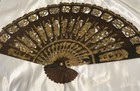 Vintage Lace Hand Fan Framed Gold Gilt Ornate Shadowbox Wall Art