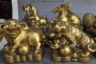6"chinese Feng Shui Brass Wealth Yuanbao Coin 12 Zodiac Year Animal Statue Set