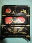 Black Lacquer 2 Tier Square Trinket Jewelry Box Floral Design 5.75" X 3.75"h