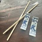 Set Of 6 Porcelain Blue & White Eggplant Chopstick Knife Rest Set