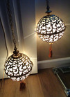 Japanese Karakusa Vintage Brass Hanging Globe Lantern Light 12"