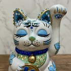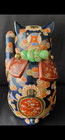 Japan Vintage Kutani Maneki Neko Beckoning Cat Good Luck Mascot 9.5"