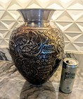 Antique Middle Eastern Persian Ghalamzani Repoussé White Alpaca Vase Hand Made