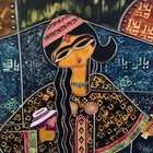 Vintage Persian Art Painting Woman On Leather Wood Scroll Wall Hanging Signed