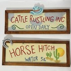 Set Of 2 Vintage Western Decor Signs - 16 Inch Wood Frame On Tin Cowboy Signs
